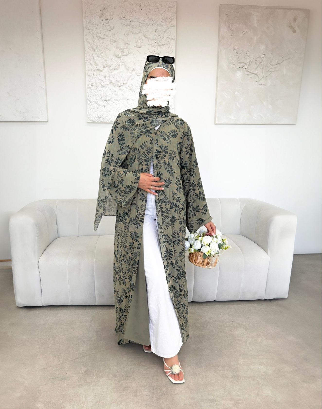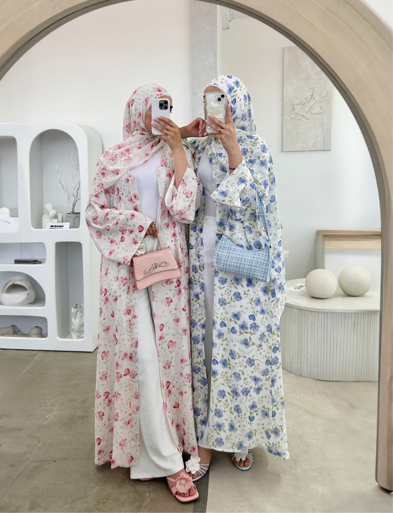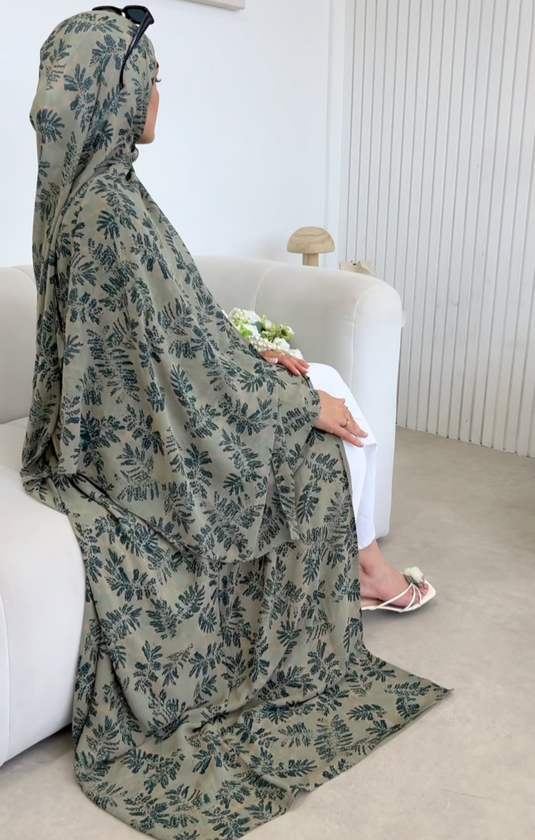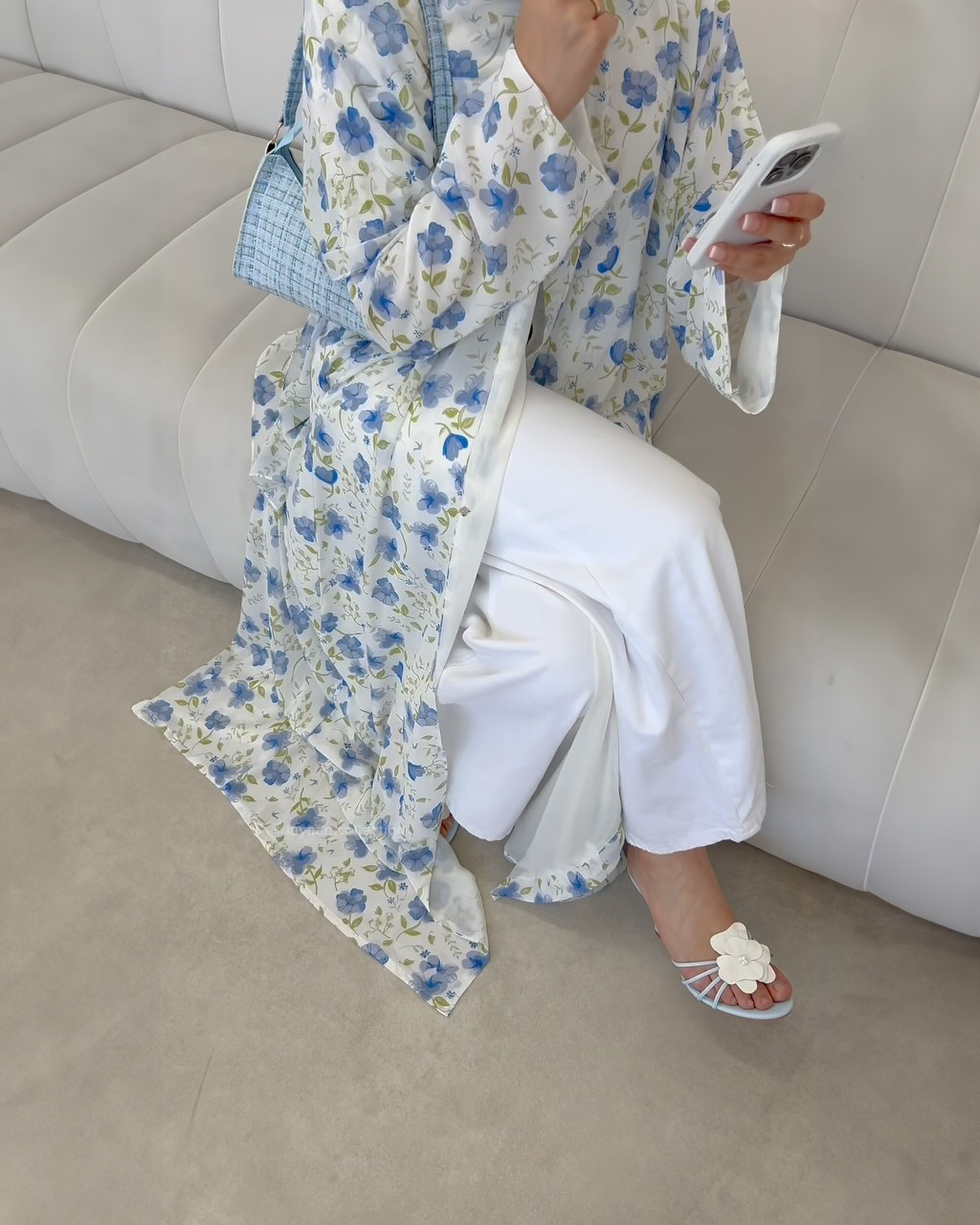 Rawdah – a floral abaya inspired by serene gardens and sunlit picnics. This modest summer abaya features a breezy, flowy silhouette with a picnic-style print and soft florals, perfect for warm days, Eid gatherings, or casual outings. Lightweight, feminine, and full of grace – Rawdah is the ultimate garden abaya for the woman who loves beauty and modesty in every season.