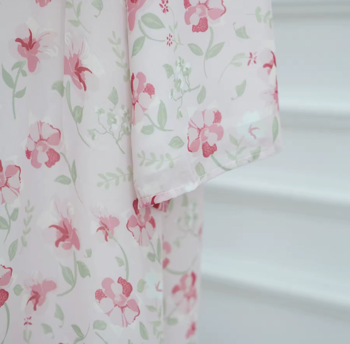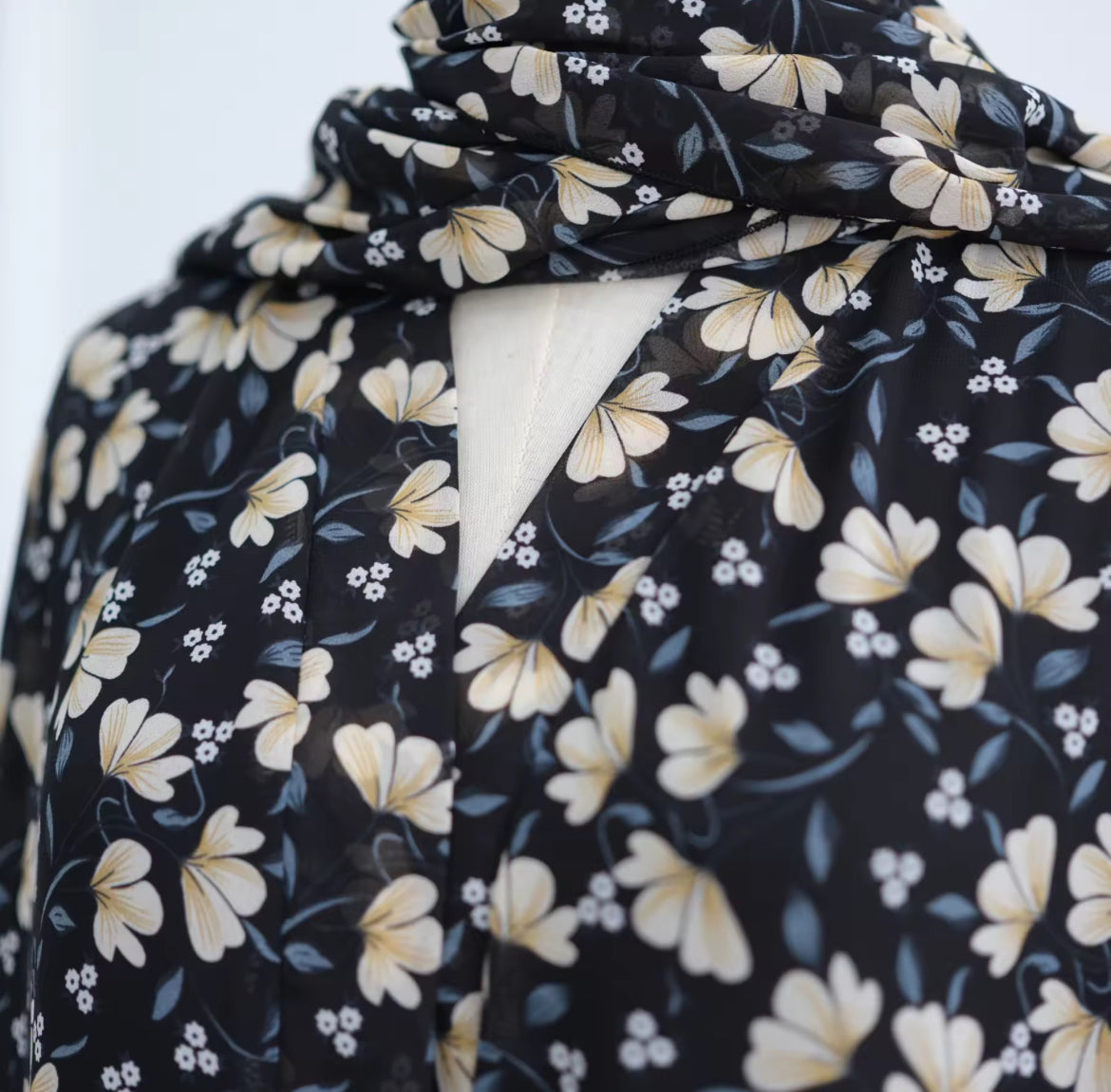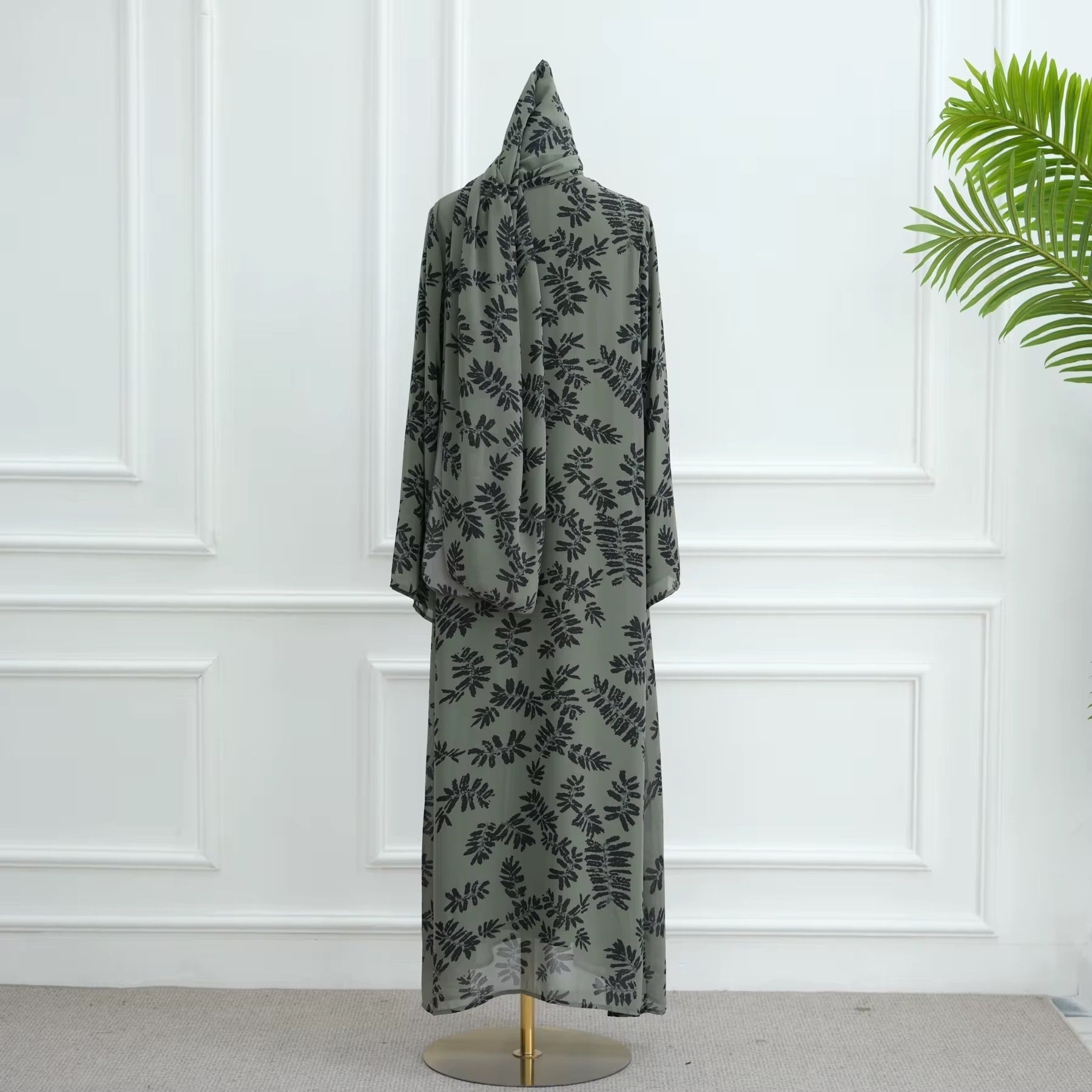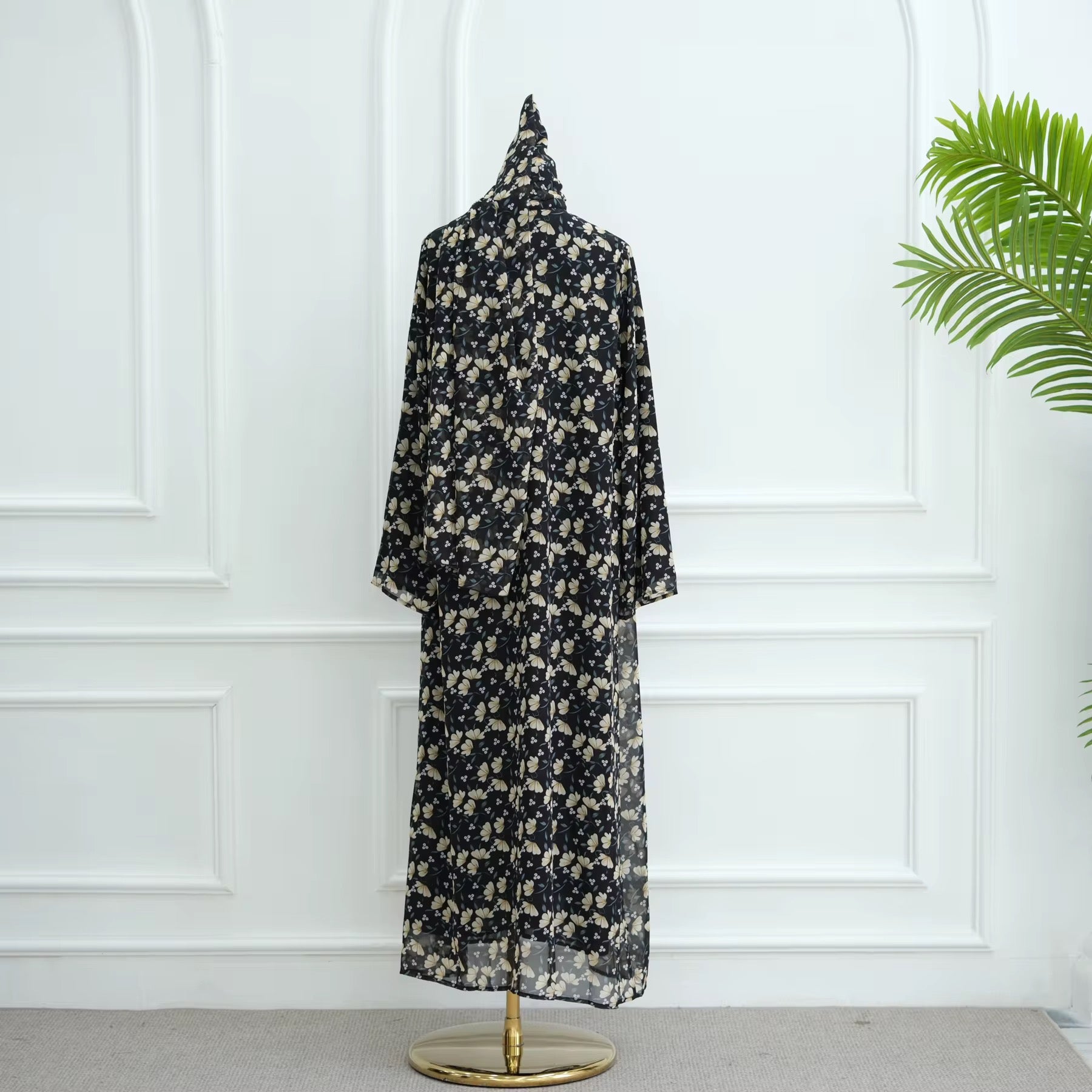 Rawdah – a floral abaya inspired by serene gardens and sunlit picnics. This modest summer abaya features a breezy, flowy silhouette with a picnic-style print and soft florals, perfect for warm days, Eid gatherings, or casual outings. Lightweight, feminine, and full of grace – Rawdah is the ultimate garden abaya for the woman who loves beauty and modesty in every season.