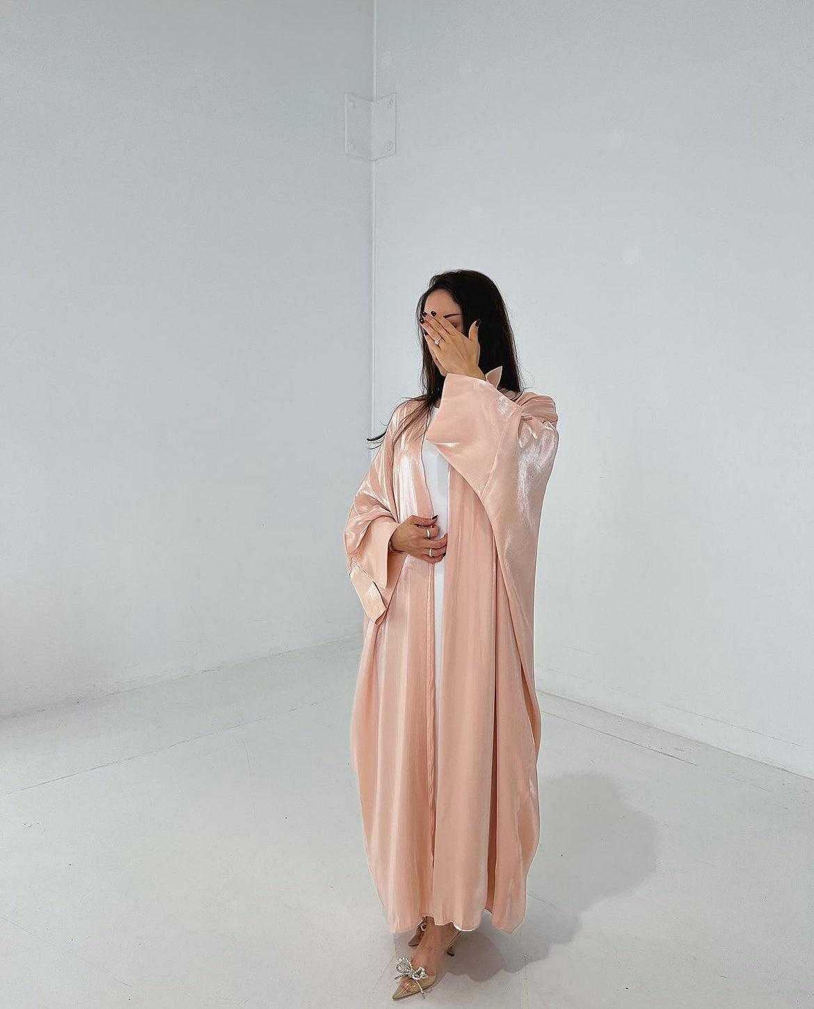 The Shimmer Slit-Sleeve Abaya embodies elegance and sophistication with its flowing silhouette and subtle shimmer details. Designed for effortless grace, its slit sleeves add a touch of modern refinement while maintaining modesty. Perfect for weddings, formal events, or special occasions, this abaya is both versatile and timeless. Dress it up or down to suit any setting, making it a must-have staple in your wardrobe.